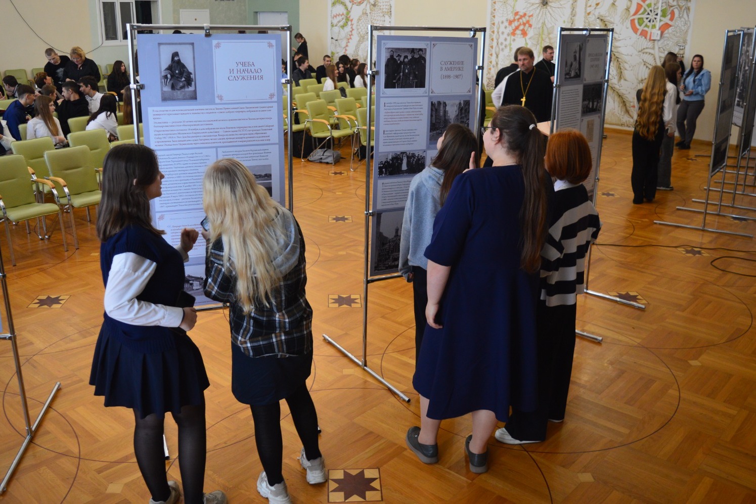 Выставочный проект, разработанный Православным Свято-Тихоновским гуманитарным университетом, подробно освещает ключевые вехи жизненного пути святителя. Ученики смогли познакомиться с историей его жизни: от рождения в семье священника в городе Торопец до избрания на Патриарший престол. Мероприятие проходит в рамках общецерковного празднования 100-летия со дня блаженной кончины великого русского патриарха.