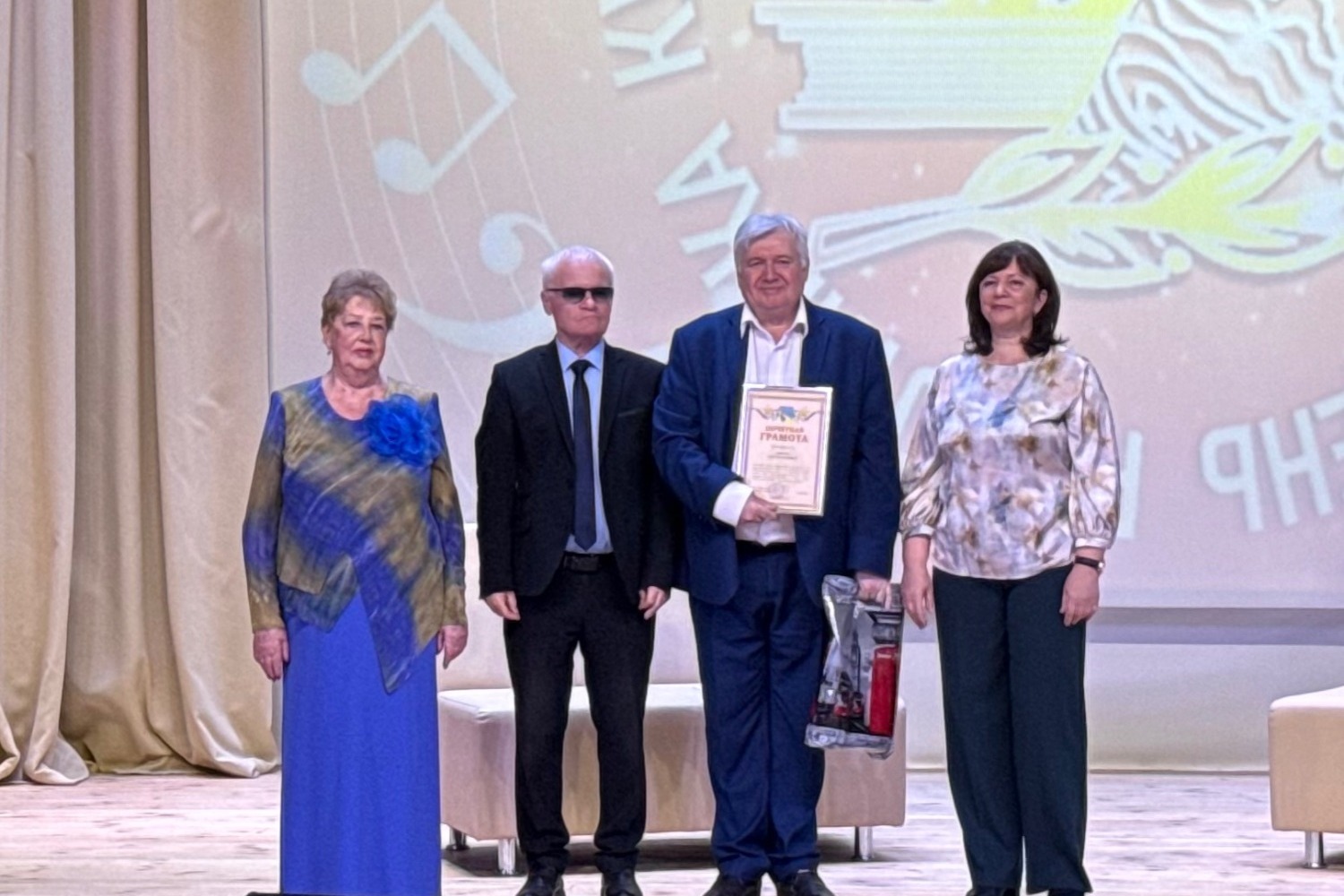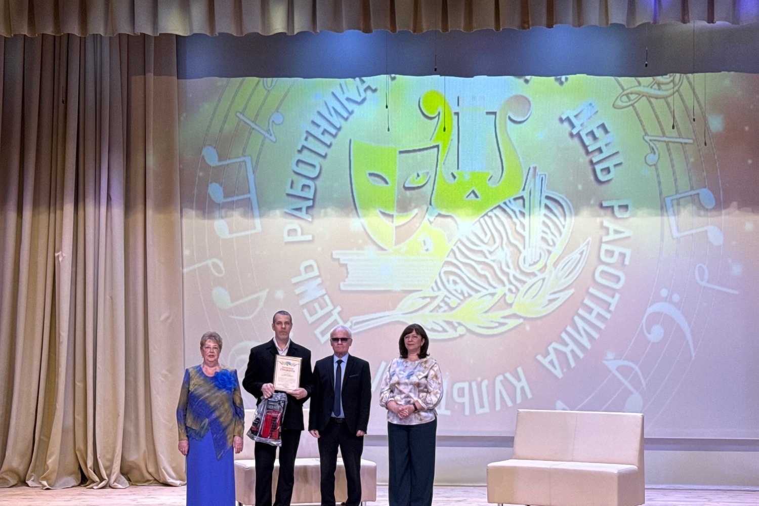 Почётными грамотами Министерства культуры Тамбовской области награждены Олег Фролов, заведующий отделом внестационарного обслуживания досугового центра, и Алексей Мананников, художественный руководитель Яблоновецкого СДК, а благодарственным письмом — Нина Канаева, руководитель Покровского СДК.