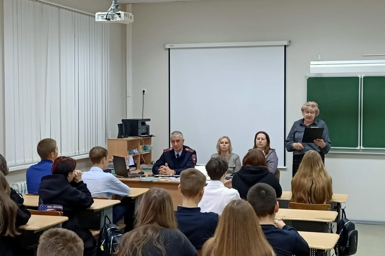 На встречу со школьниками пришли: инспектор ПДН ОП, капитан полиции Геннадий Ефанов; ответственный секретарь муниципальной комиссии по делам несовершеннолетних и защите их прав Петровского МО Елена Сорокина; консультант отдела образования, специалист органа опеки и попечительства Людмила Дьякова.