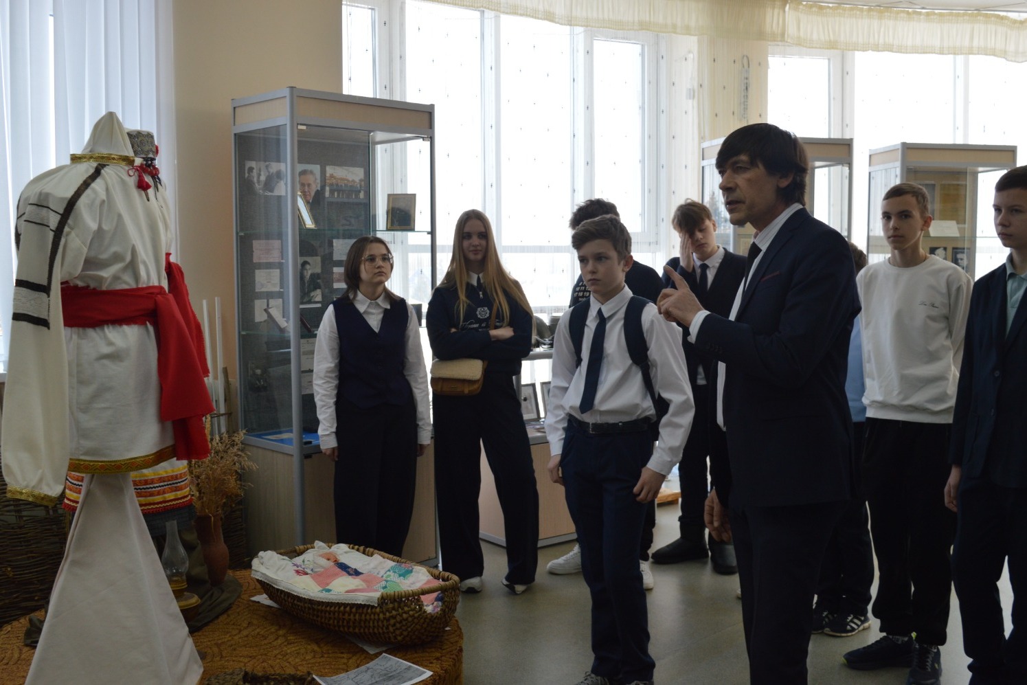 Отдельной частью экскурсии стало выступление родоначальника школьного музея, педагога Ольги Бахруддиновой, которая дополнительно погрузила школьников в прошлое округа, рассказав о знаменательных людях.