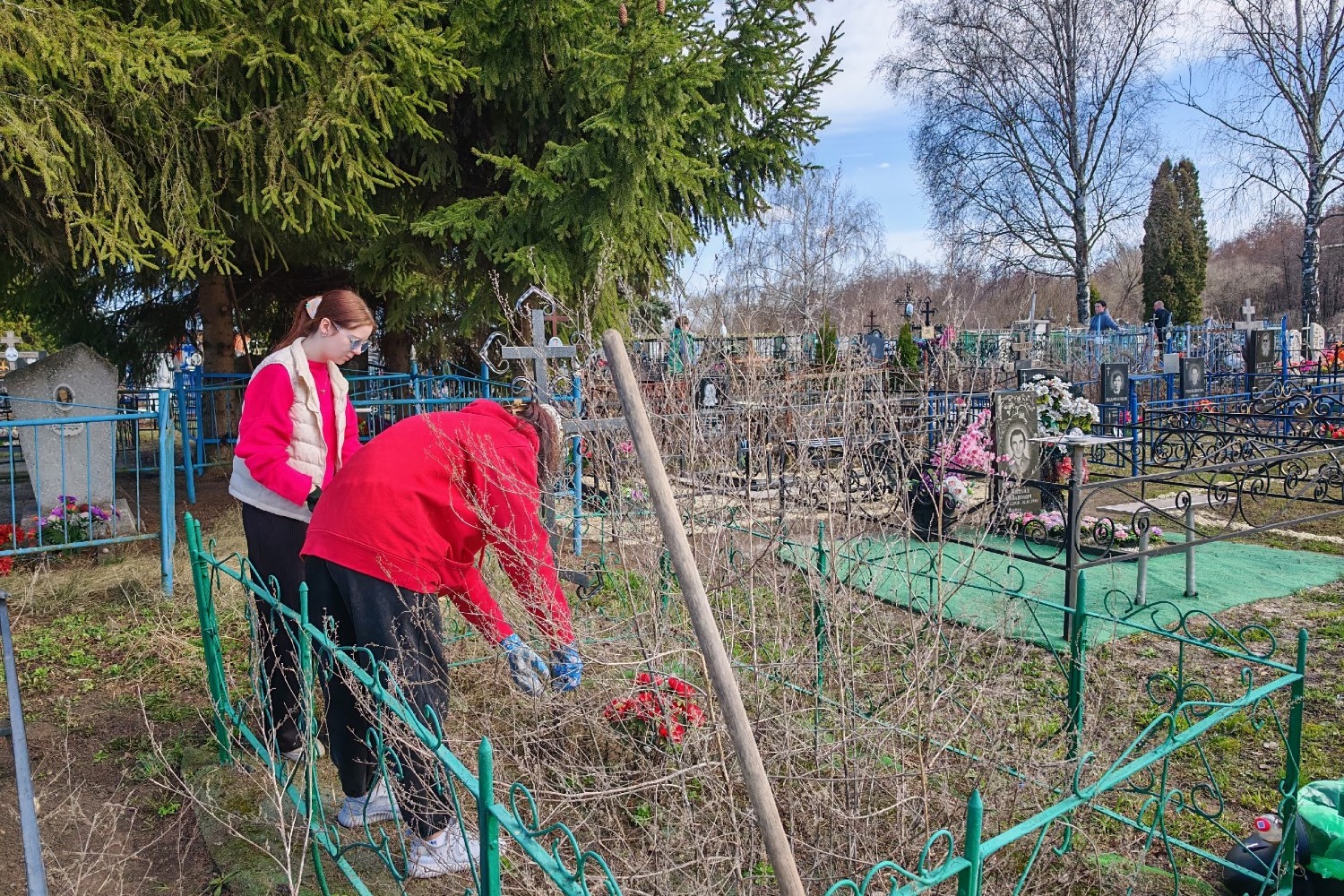 В дни весенних каникул ученицы 10-го класса филиала Избердеевской средней школы в селе Дубовое совместно с педагогом Ольгой Родиной отправились на местное кладбище, чтобы убрать заброшенные, сильно заросшие могилы. Девушки выдёргивали сухую траву, убирали ветки, наводили порядок там, куда долгие годы не приходили родственники.