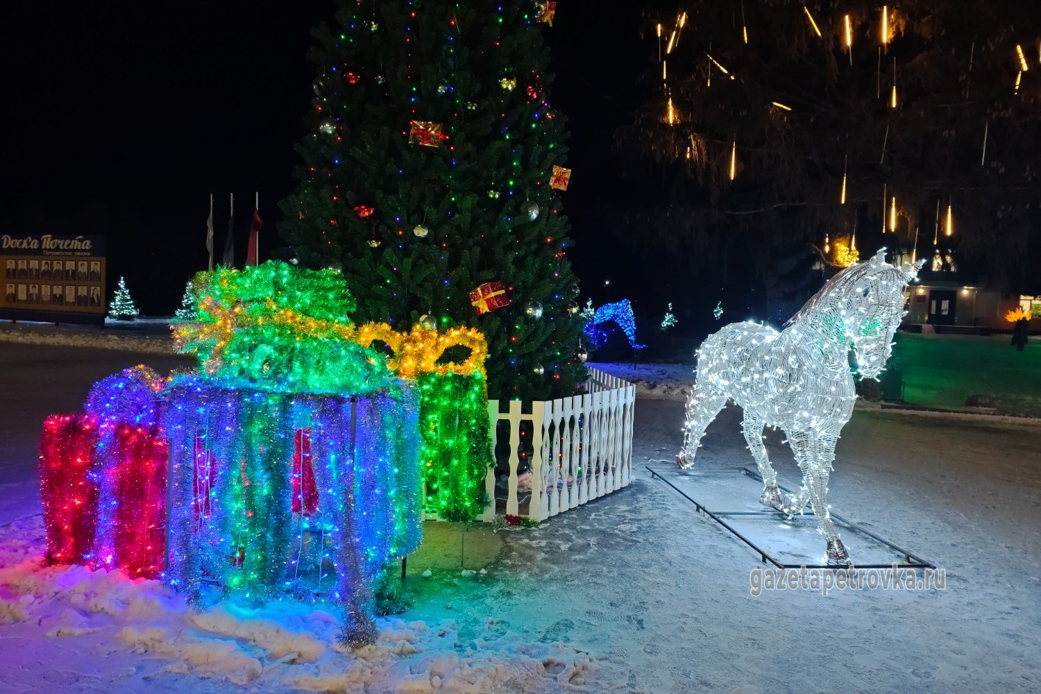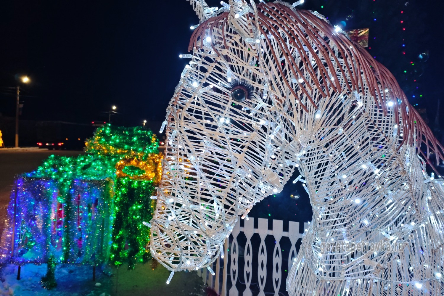 Сотрудники ресурсного центра обеспечения сферы образования и культуры уже пятый год подряд наводят праздничную красоту в центре села Петровского. За это время они создали больше десяти объёмных инсталляций. Умельцы мастерят и символы наступающего года. В 2026 году им стала лошадь.