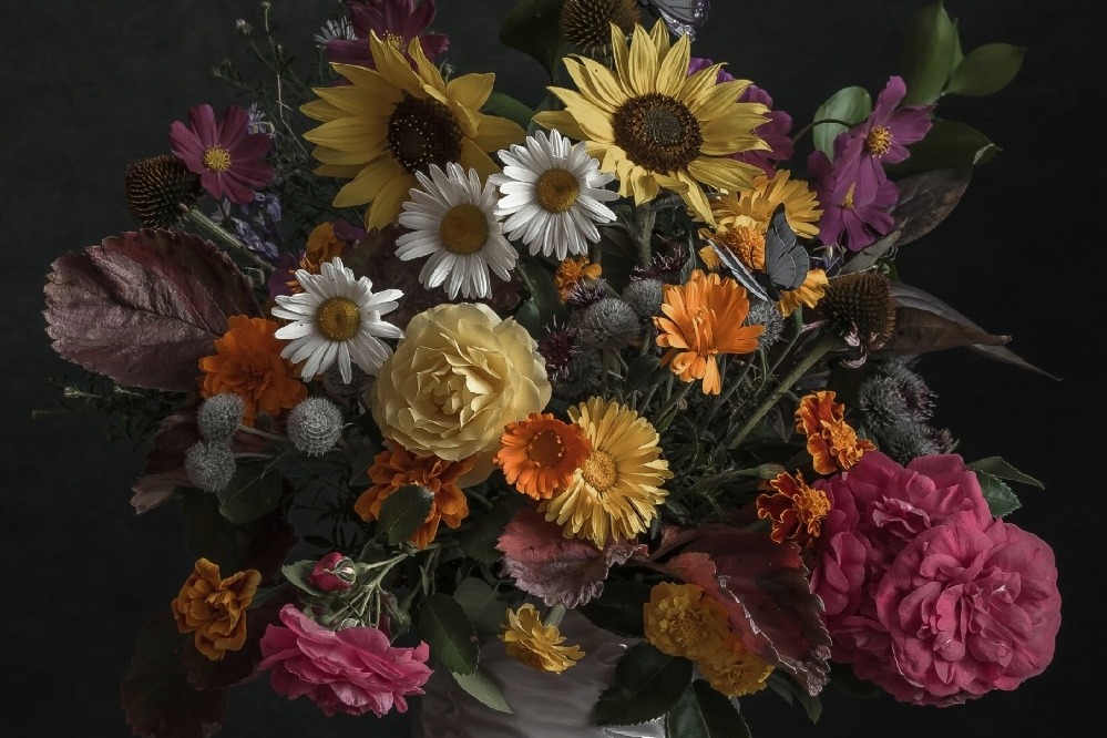 Людмила Зотова, Тамара и Наталия Медвежинские, проживающие в Петровском округе, поделились красочными снимками, отражающими всё великолепие поздних букетов. На фотографиях можно увидеть роскошные георгины, напоминающие своей мягкостью бархат, стоящие рядом с нежными астрами. Композиции из роз и хризантем также поражают своей яркостью.