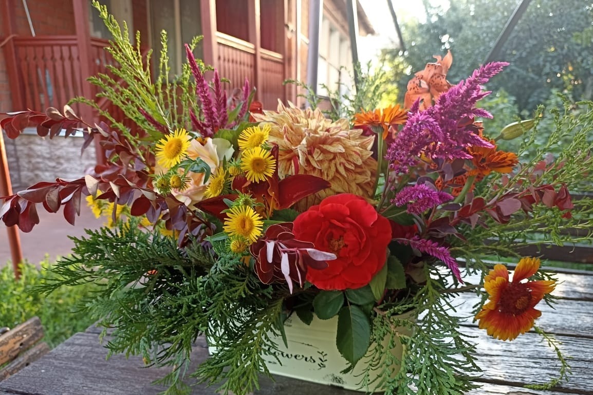 — Мне нравится заниматься посадкой разнообразных цветов на улице. Важно, чтобы их цветение радовало глаз с ранней весны и до глубокой осени. На моём приусадебном участке можно увидеть флоксы, лилейники, хризантемы, ромашки, розы и ещё множество других видов. Даже встречаются экземпляры, названия которых мне неизвестны, но они всё равно мне симпатичны. Осенние работы в огороде уже завершены, и часть цветов я срезала, чтобы создать осенний букет, — поделилась жительница села Дубовое Людмила Зотова.