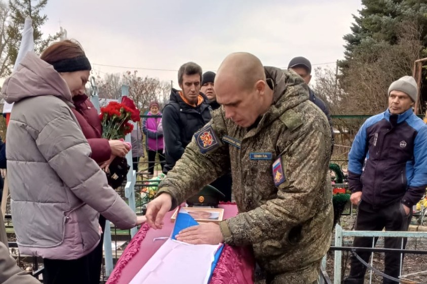 В селе Дубовое сегодня, 15 ноября, проводили в последний путь участника СВО Михаила Коптелова. Местные жители пришли проститься с погибшим на кладбище. На траурной церемонии слова соболезнования выражали жене бойца Наталье и дочери Татьяне.