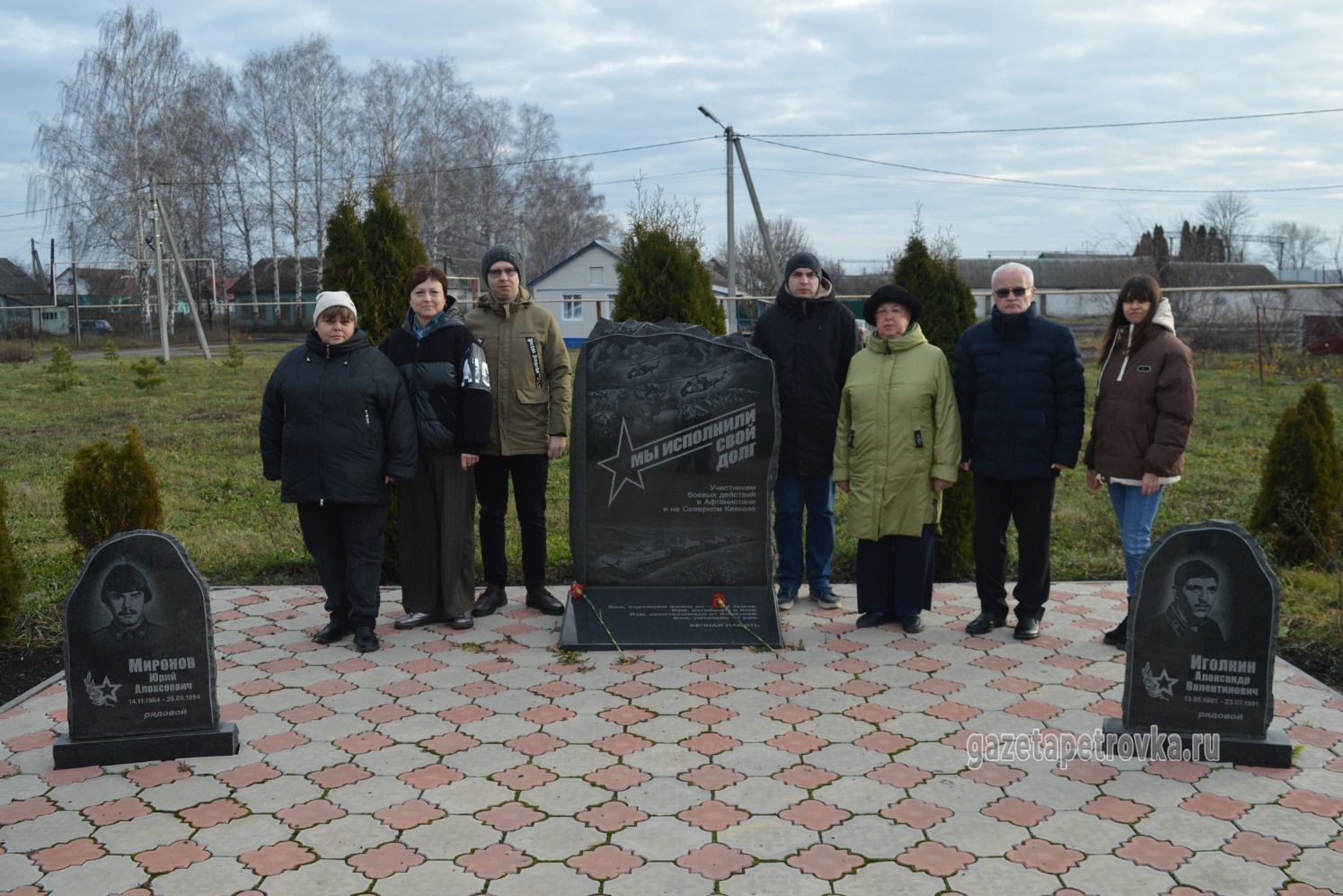 В завершении митинга участники возложили красные гвоздики к памятникам уроженцев Петровского округа Алексея Пичужкова и Виталия Лаптева, погибших при исполнении воинского долга на Северном Кавказе.