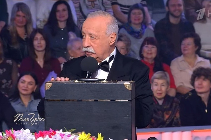 — А от нас с Первым каналом — приз. Будьте любезны. На Первом канале по-другому быть не может! — сказал Якубович и вручил женщине в придачу к деньгам ещё и приз.