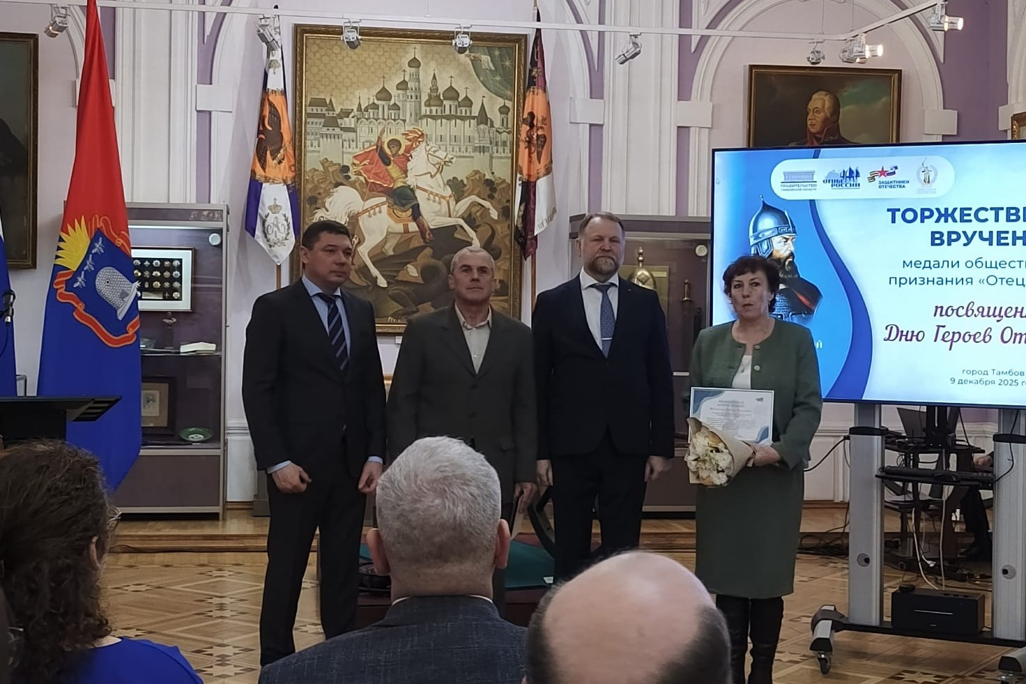 В Тамбове 9 декабря, в День Героев Отечества, глава региона Евгений Первышов совместно с председателем правления Всероссийского движения «Отцы России» Андреем Коченовым вручил общественные награды родителям участников специальной военной операции — медали «Отец солдата» и благодарности «Матери солдата».