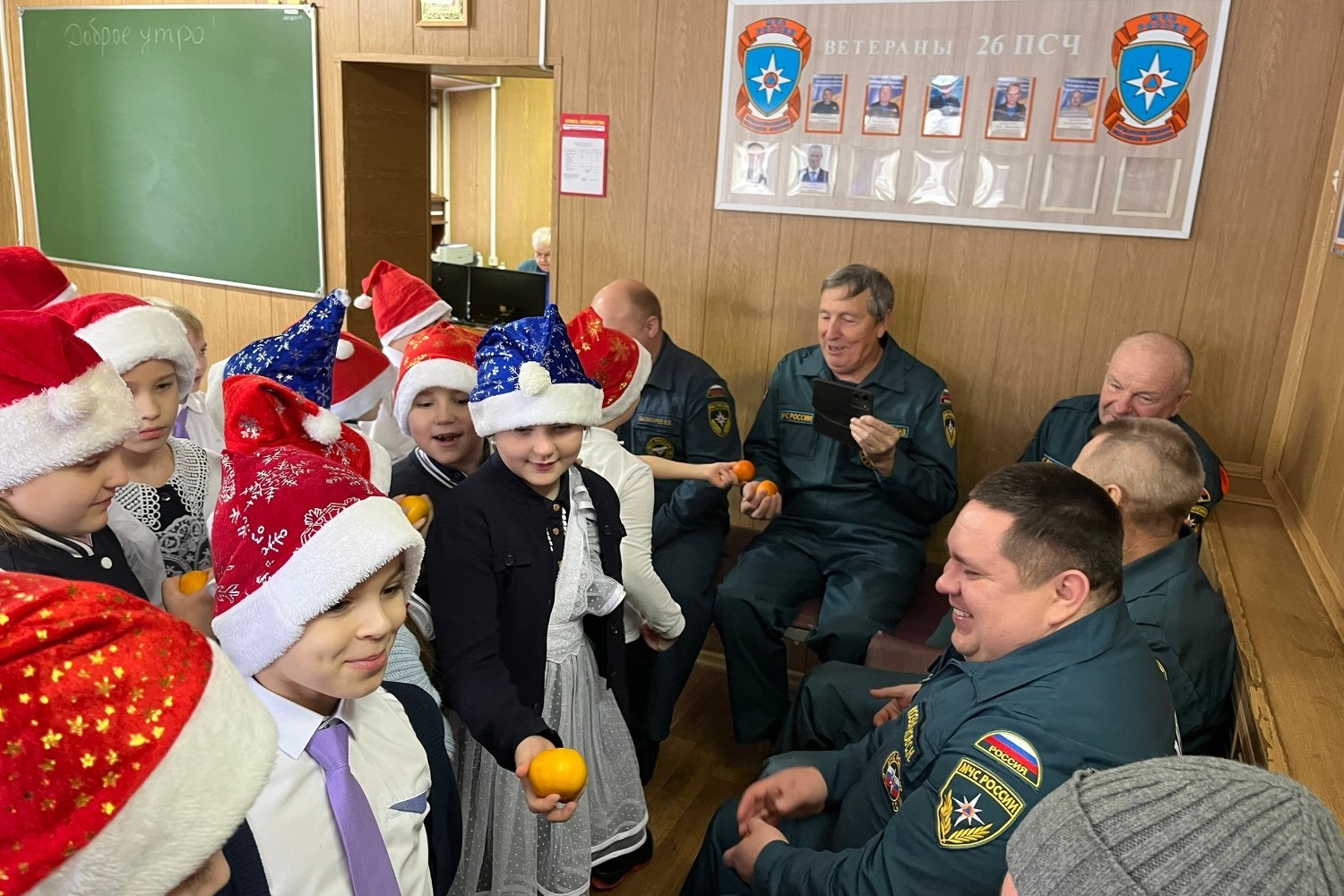 Визит получился особенно душевным и тёплым. Ребята выразили искреннюю благодарность за нелёгкий и самоотверженный труд спасателей. Завершилась встреча по доброй традиции: юные гости вручили пожарным «волшебные» мандарины — символы праздника и тепла — и пожелали, чтобы в наступающем году исполнились все их заветные желания.