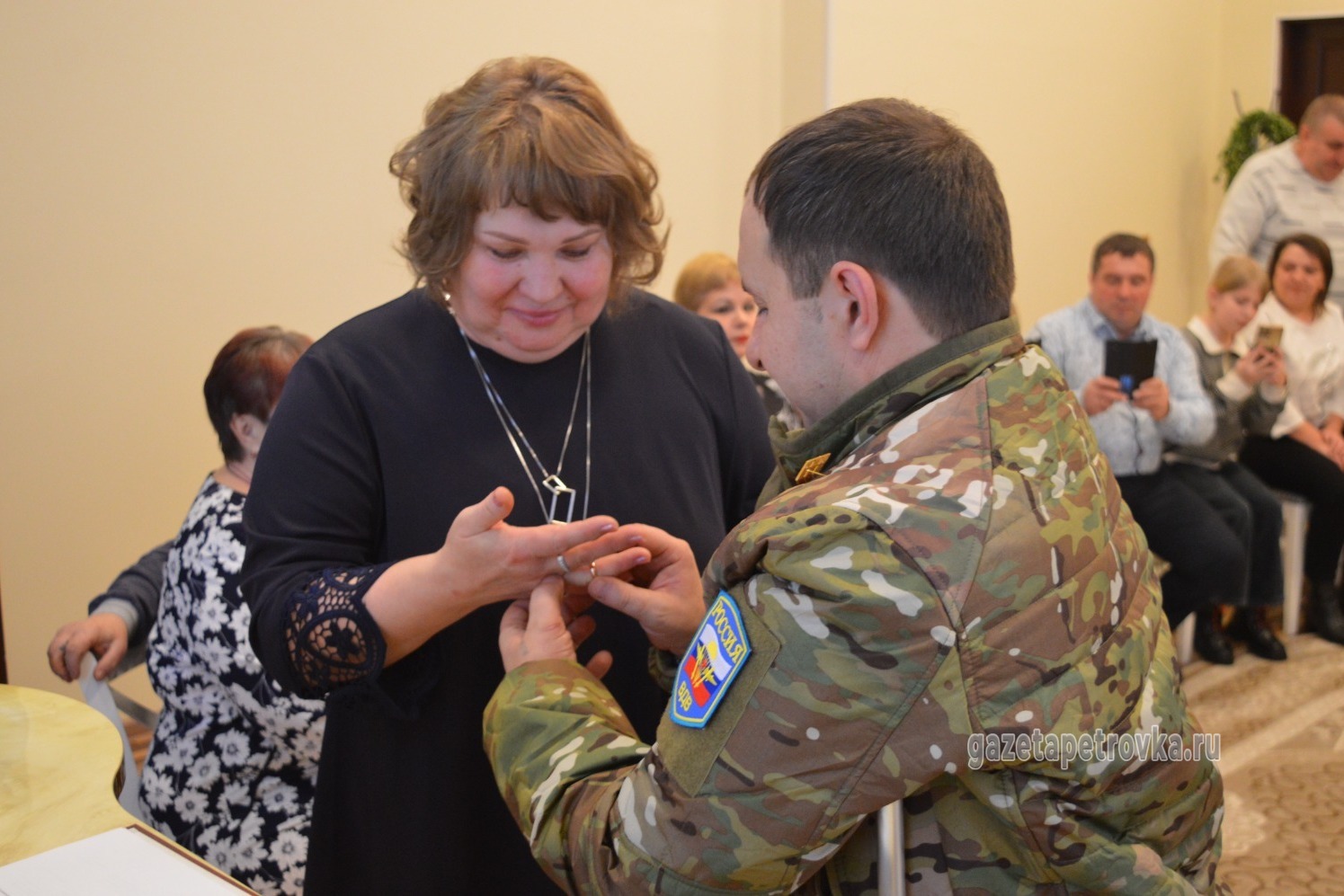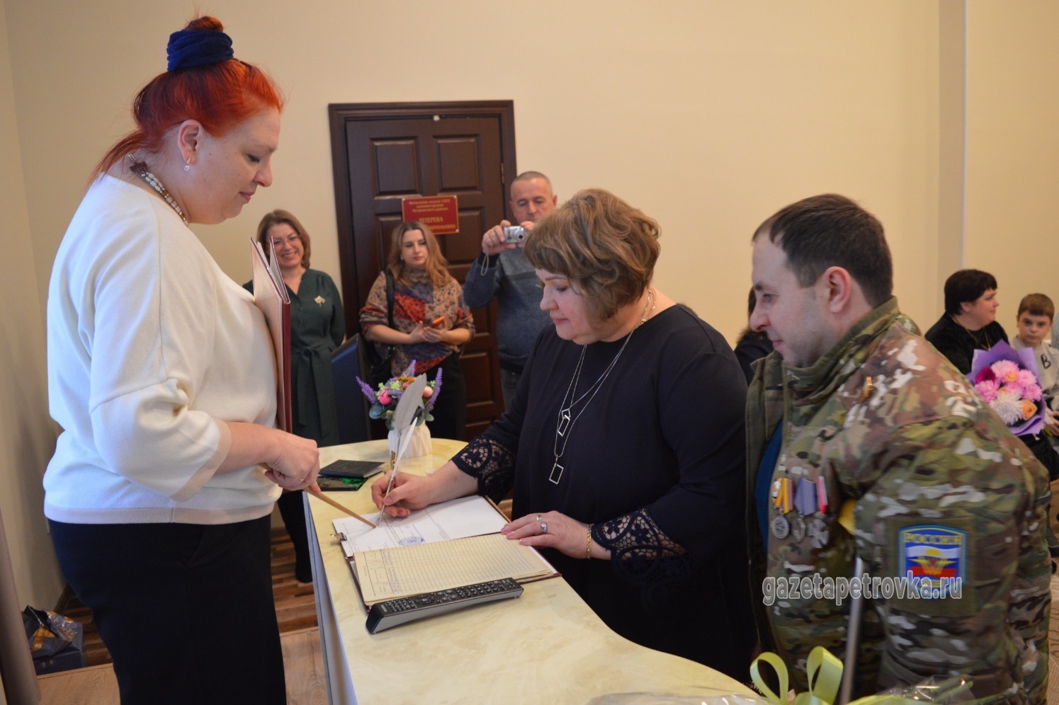 По возвращении с зоны специальной военной операции Дмитрий незамедлительно предложил Светлане стать его женой, и девушка мгновенно ответила согласием. Пара решила оформить союз в Петровском ЗАГСе, поскольку село близко сердцу Дмитрия, здесь живут его родственники, и эта территория является частью его родного края. Важнейший день в жизни молодых сопровождался поддержкой близких друзей и членов семьи, которые собрались, чтобы разделить счастье влюбленных. Глава администрации Петровского округа Сергей Ефанов и начальник местного территориального отдела Ольга Подколзина поздравили молодоженов, пожелав любви, счастья и благополучия.