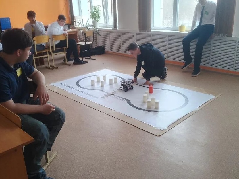 Команды Петровской школы соревновались сразу в трёх дисциплинах: «Кегельринг-мини», «Двойной кегельринг», «Езда по линии-2».